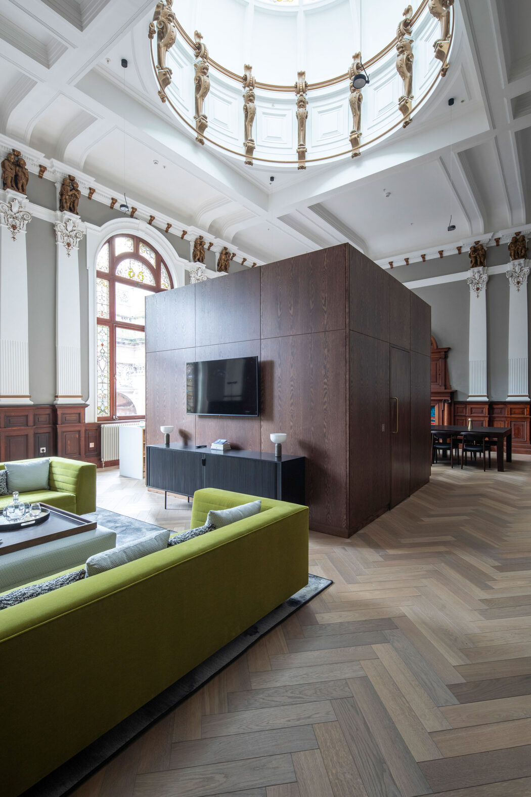 3DReid was appointed to design the front of house areas within both buildings and transformed the interior of the historic Parish Halls to house meeting facilities, a gym, heritage suites and the new Liberty Suite penthouse with a view over the Glasgow City Chambers opposite.