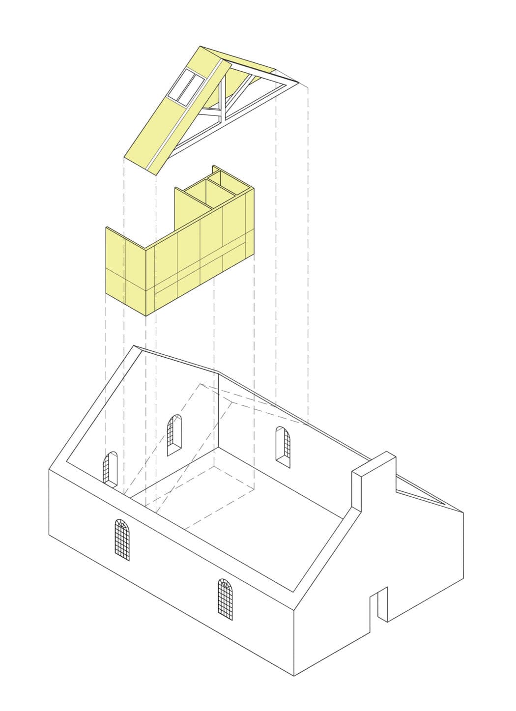 The solution was to remove a dilapidated later addition hall and consolidate all activities within the church itself, which had been left vacant in recent years due to being considered no longer fit for purpose by the congregation.