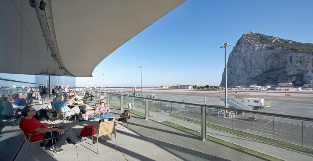 Public realm is enhanced by a wide public plaza. The entrance to the Gibraltar Airport terminal is a local meeting point for visitors and residents of the town.