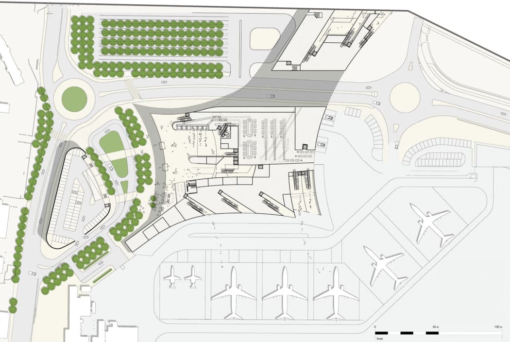The new terminal retains the close proximity of passenger zones to the activity and theatre of the airport operations, providing an extensive roof-terrace where passengers can gather and enjoy the local climate and aircraft movements.