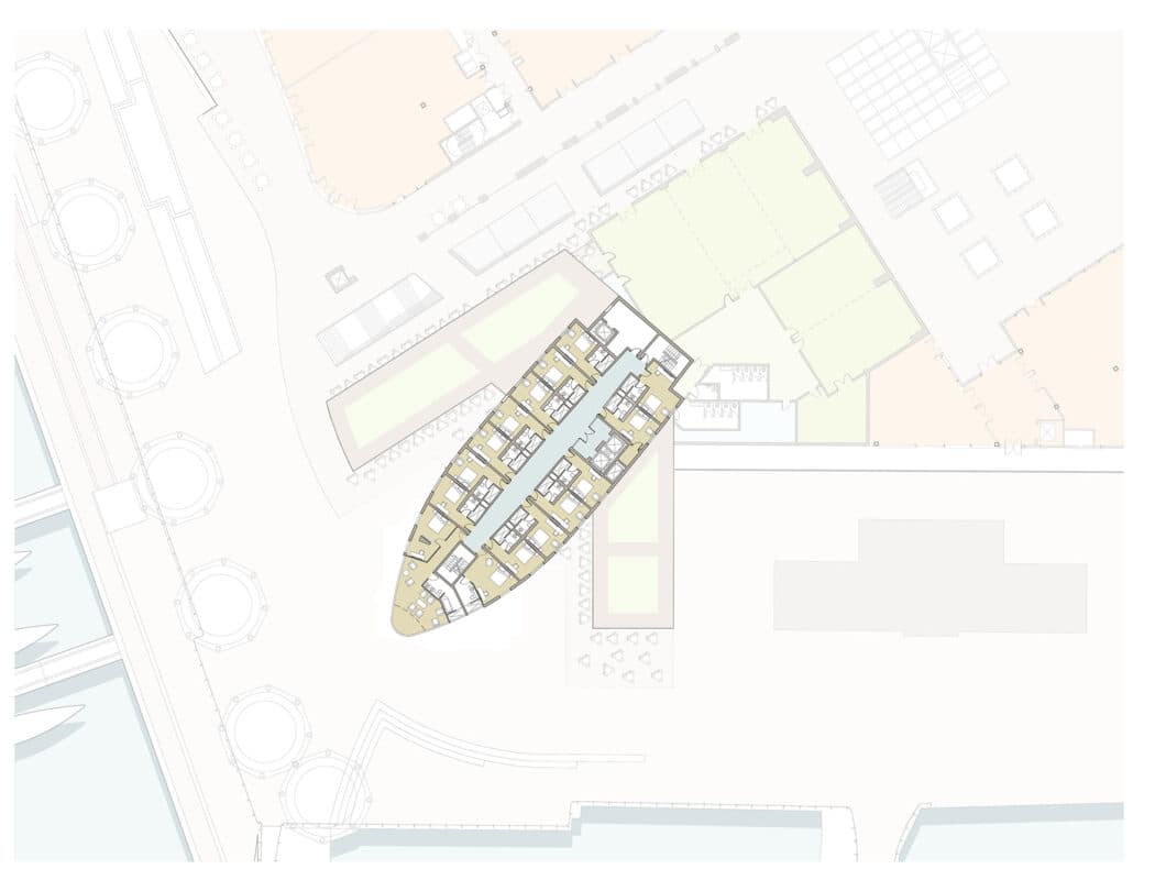 The proposal seeks to respond to the iconic nature of the adjacent Spinnaker Tower, whilst also being reflective of the contextual nautical environs through its form and materiality.