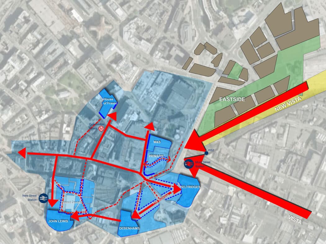 When 3DReid was appointed to transform the Pavilions into Primark’s largest flagship store to date, the ageing shopping centre was earmarked for demolition to make way for a new pedestrian link connecting the proposed HS2 terminus to Birmingham City Centre.