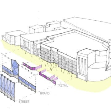 The Pavilions has been opened up to activate proposed public realm + connect new Primary Walking Routes.