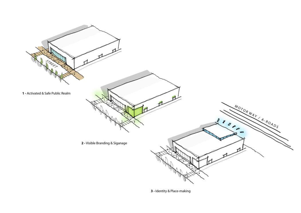 Building design which helps to create a clear sense of identity for Queenslie Park, along with branding and signage opportunities for tenants to display individual identity within Queenslie Park.