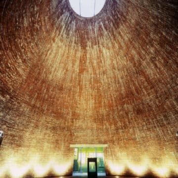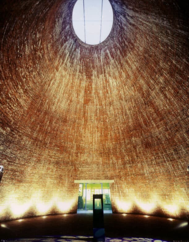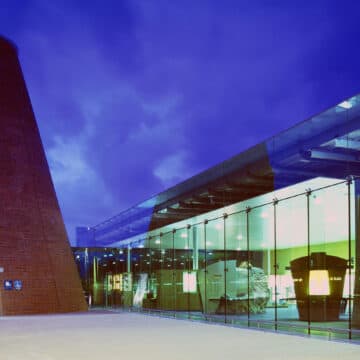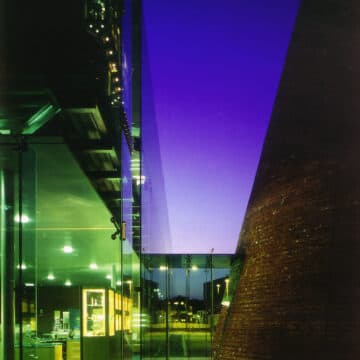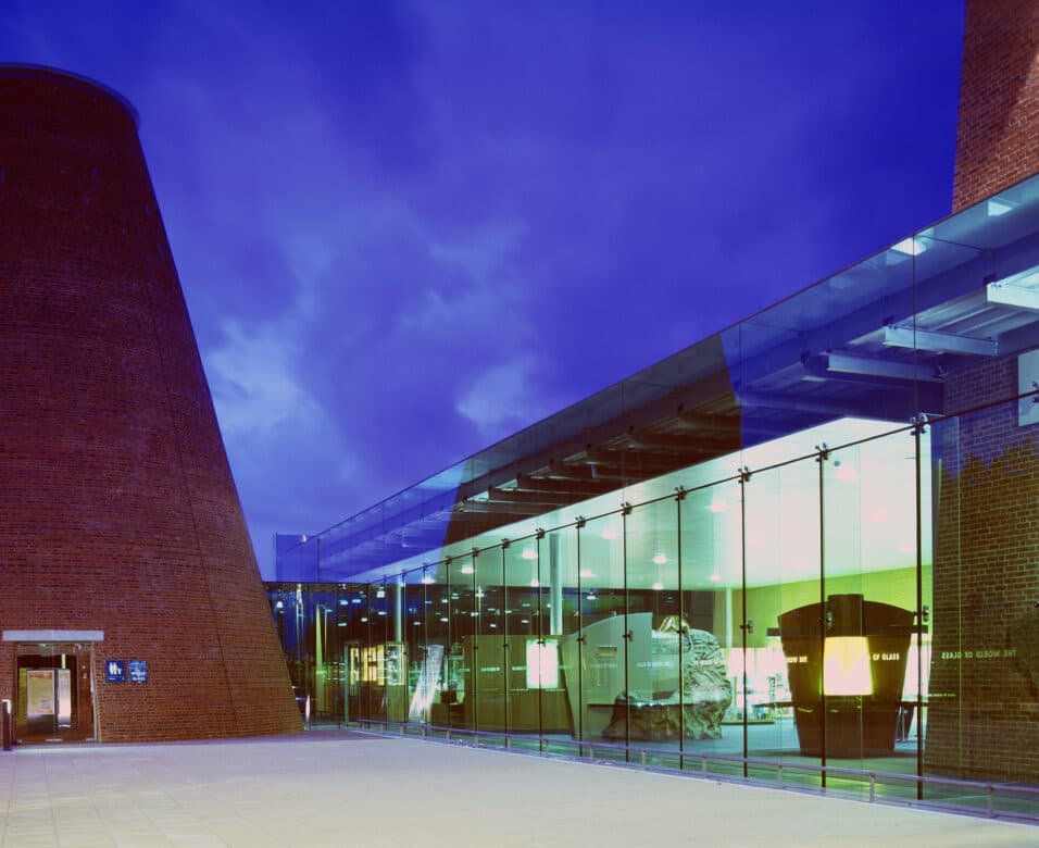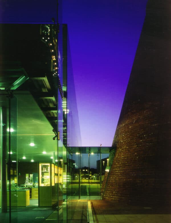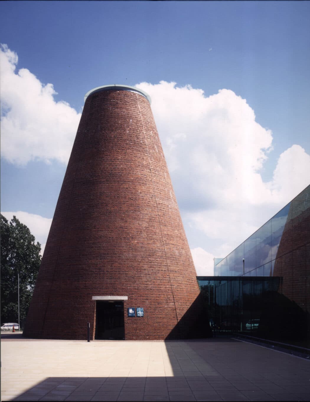 The original brick cone chimney has been recreated at the front of the development to create a strong local landmark and entrance experience for visitors to the museum.