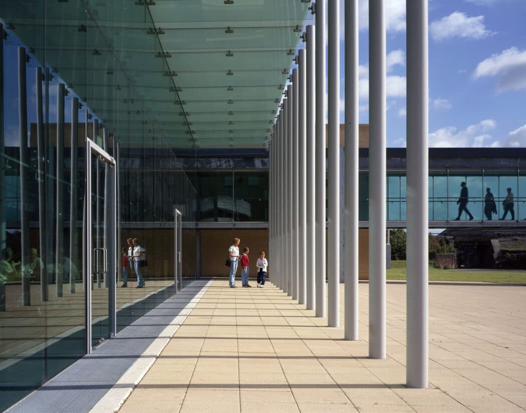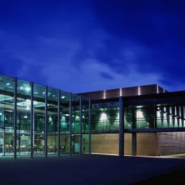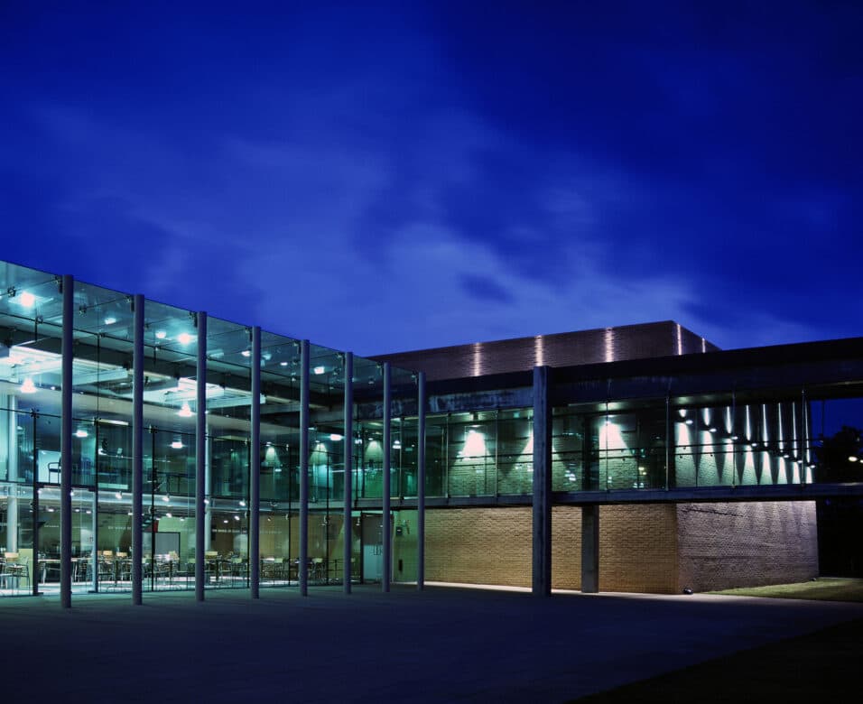 Contrast between the solidity of the brickwork and transparency of the glazing brings visual balance to the mass.